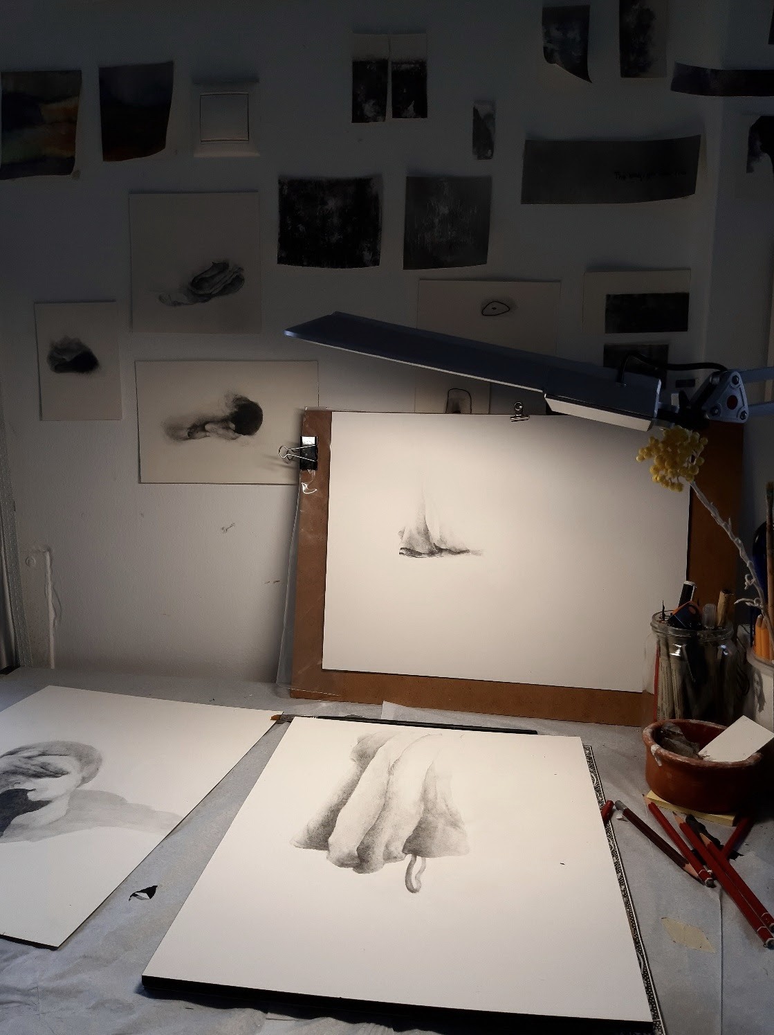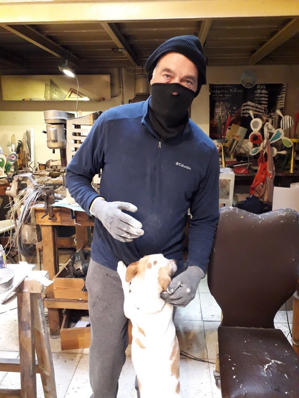 «Αυτή είναι η 17η νύχτα στο εργαστήριο απ΄ όταν κλειστήκαμε μέσα», γράφει ο Μανώλης Χάρος. «Υλικά υπάρχουν, διάθεση καλή, καφέδες κ.λπ., ΟΚ. Πηγαίνω όταν ξημερώνει (όπως πάντα πήγαινα) και κλείνω γύρω στις 8, με διάλειμμα το μεσημέρι, χωρίς να χτυπά τηλέφωνο και χωρίς να πρέπει να φεύγω. Έβαλα στόχο να τακτοποιήσω τις μεριές που μαζεύουν πράγματα, το τραπέζι και τα ράφια. Δυο ράφια έφτιαξα (μόνο) όλες τις μέρες και καταχάρηκα με αυτά που βρήκα. Κανονική αρχαιολογία! Τώρα που ακούω ότι παρατείνεται η καραντίνα, μπορεί και να πετύχω τον στόχο!».